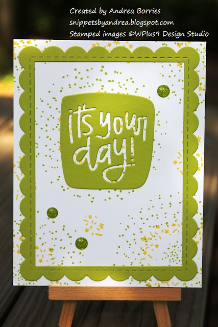 Accessories: It's Your Day die (Simon Says Stamp), Frame in Frame 2 Cutting Plate (Taylored Expressions), Glitter Enamel Dots